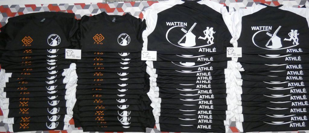 Flocage sur 60 tee shirts fournis par le client pour le club 'watten athlé'