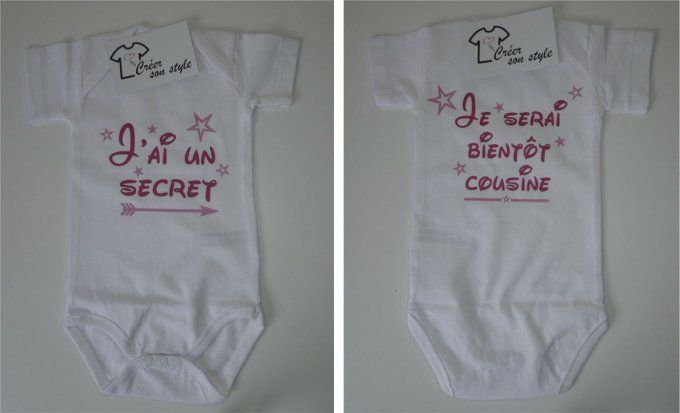 Body 100% coton disponible en couleur blanc avec écriture fuchsia et rose clair. Les body sont disponible uniquement en blanc en manches courtes ou longues.