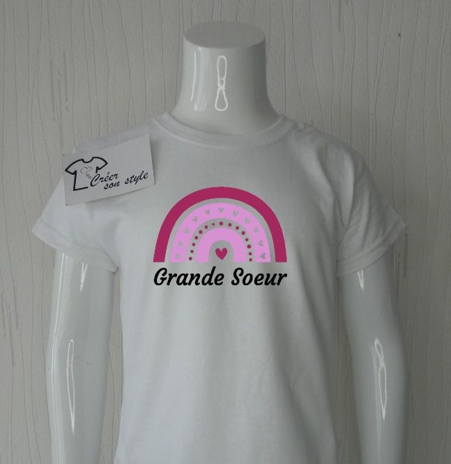 Duo soeur comprenant 1 Tee shirt enfant fille et 1 body bébé 100% coton de couleur blanc avec écriture noir et dessin fuchsia et rose clair. D'autre coloris disponible.