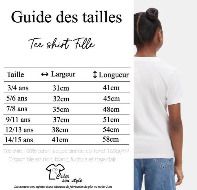 > Taille tee shirt enfant fille du 3/4ans au 9/11 ans.