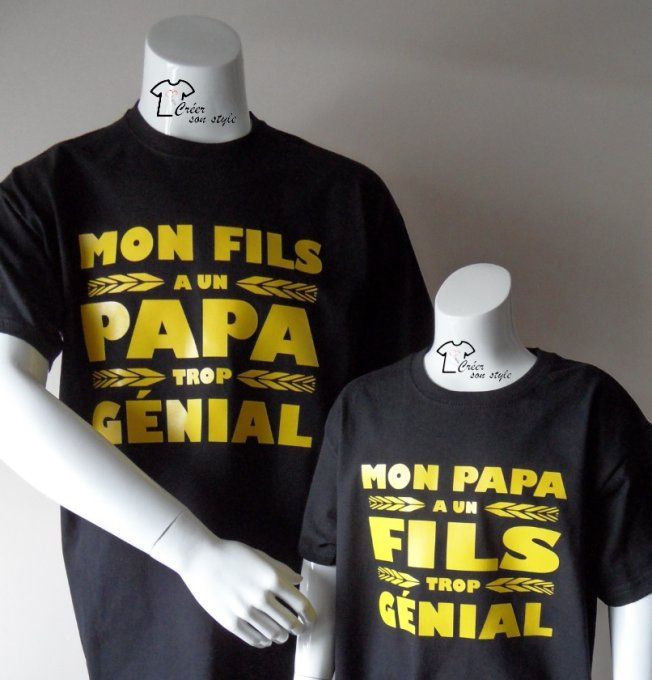 Lot de 2 tee shirts comprenant 1 tee shirt adulte homme et tee shirt enfant 100% coton de couleurs blanc avec écriture noir. D'autre coloris disponible.