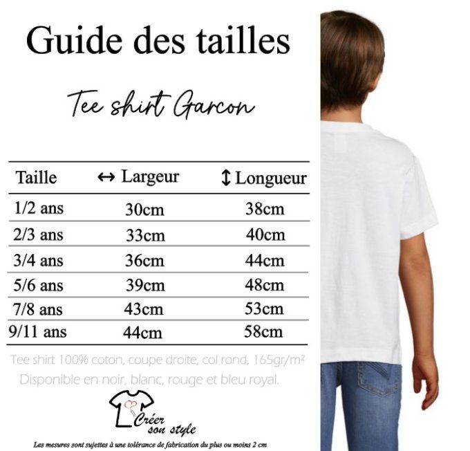 > Taille tee shirt enfant garçon du 1/2 ans au 9/11 ans sauf le noir à partir de 3/4 ans.