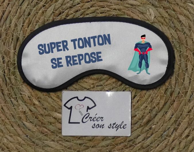 > Masque nuit, face extérieur satin, face intérieur en flanelle, bordure et élastique noir.
