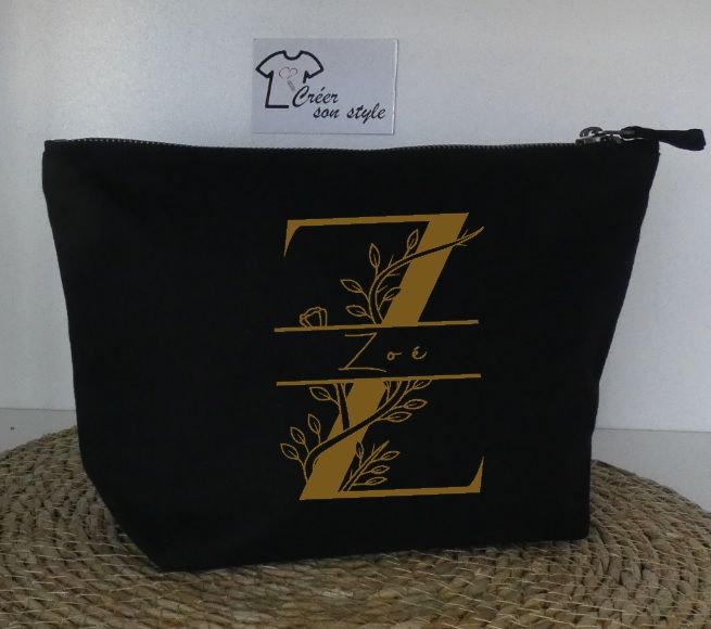Fermeture par zippe en métal. Dimensions: 28 cm de large, 19 cm de haut. A personnalisé avec le prénom de votre choix.