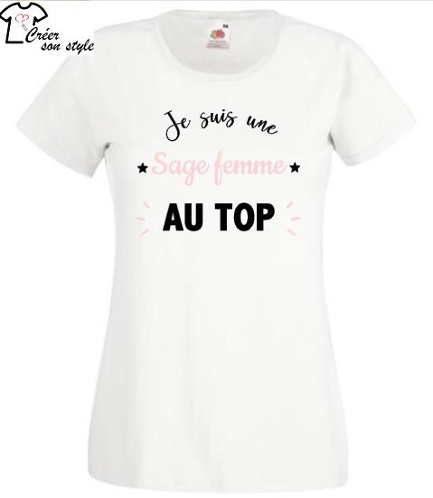 Tee shirt femme 100% coton de couleurs blanc avec écriture noir et rose.