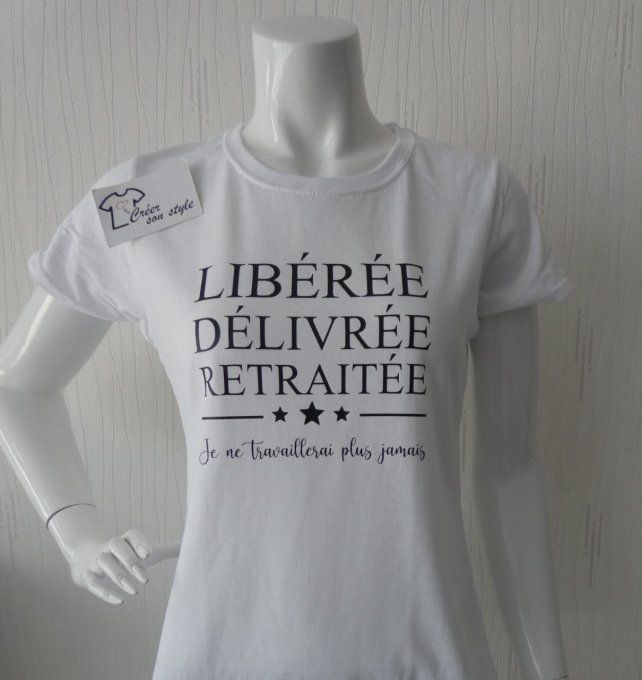 tee shirt femme "libérée, délivrée, retraitée je ne travaillerai plus jamais"