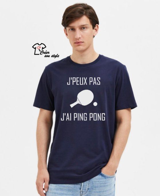 Tee shirt homme 100% coton de couleur bleu marine avec écriture blanche.